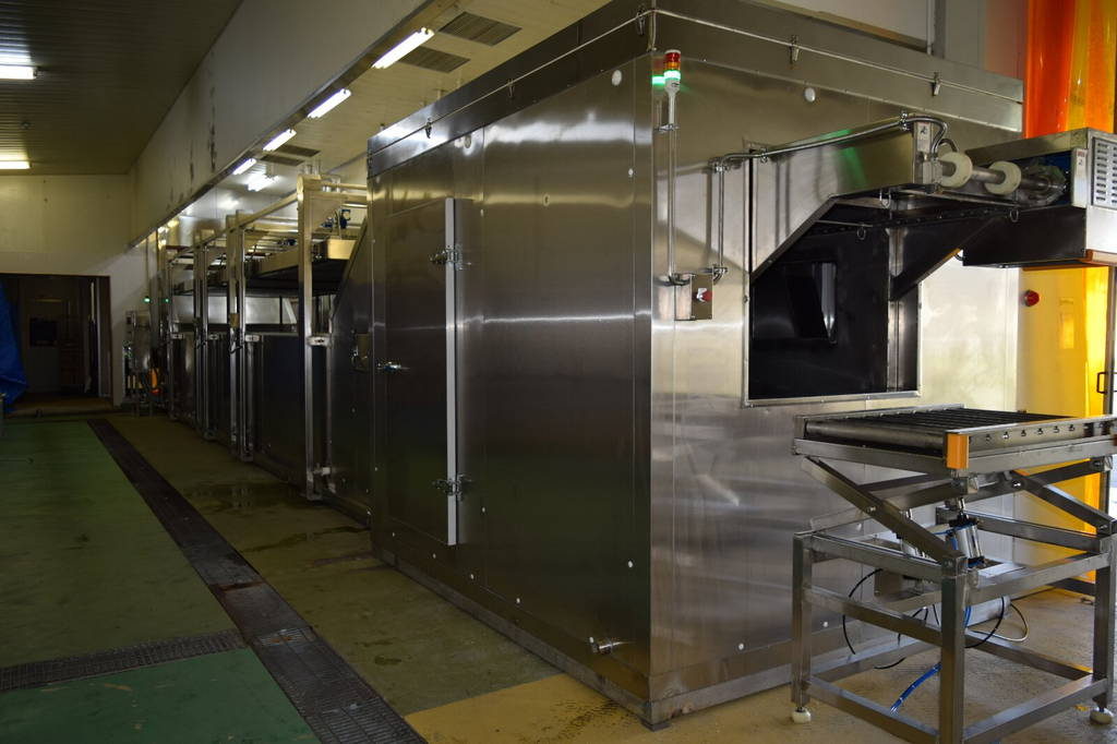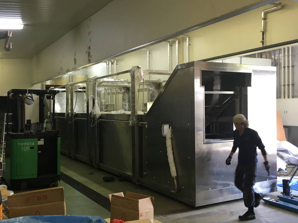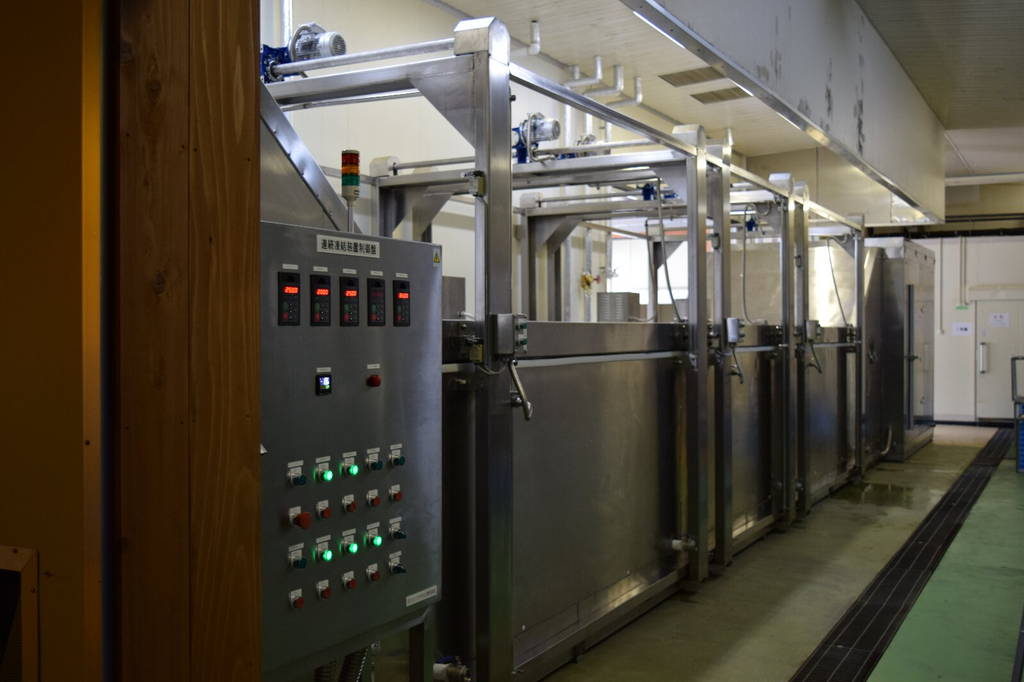 ゴンドラ連続式液体凍結装置 SF-1160H 冷凍野菜製造⼯場冷凍野菜製造工場に、ゴンドラ連続式液体凍結装置 SF-1160Hを設置しました。主に冷凍長芋とろろや冷凍大根おろしを製造しています。添加剤を一切使用せず、離水が少なく解凍しても生の状態と遜色ない高品質な凍結品ができあがります。 ゴンドラ連続式液体凍結装置 SF-1160H 動画 どんなことでもお気軽にご相談ください お問い合わせ ゴンドラ連続式液体凍結装置 ベルト式連続液体凍結装置 バッチ式急速液体凍結装置 連続ボイルクール装置 連続洗浄殺菌装置 台⾞式スチーマー 空冷式ブラインクーラー セリウスソフト水生成装置